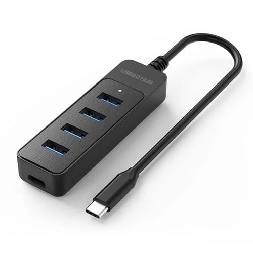 • 4 Puertos USB 3.0 con velocidad de transmisión de hasta 350 MB/s, Soporte para disco duro de hasta 12 TB, núcleo de cobre estañado para antiinterferencias y transmisión estable, Alimentación mediante Cable USB Tipo C externo