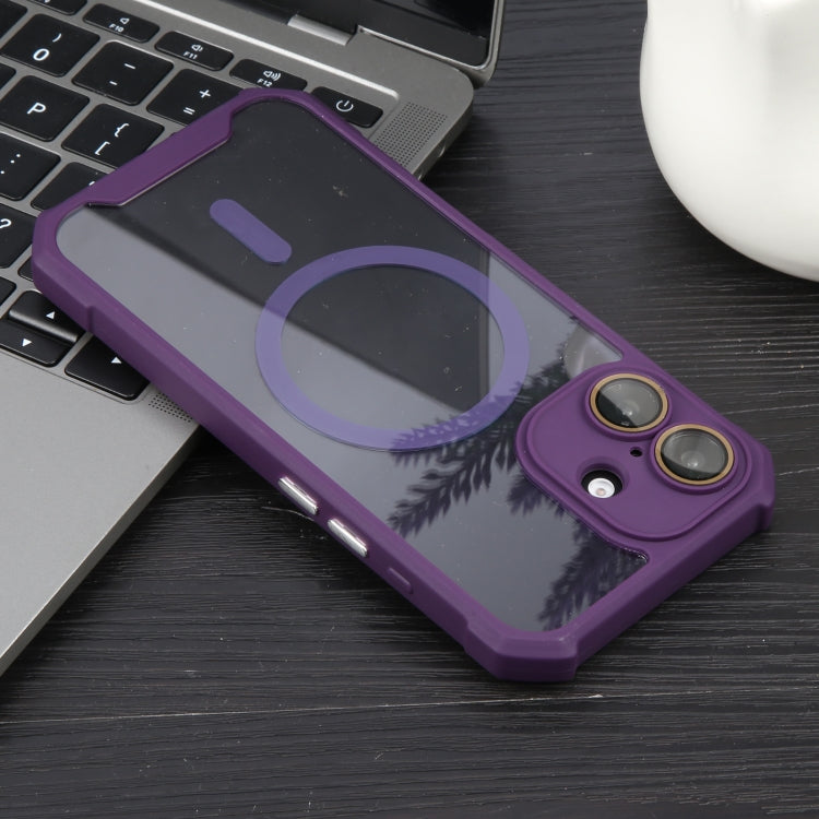 Estuche Acrílico y TPU con Bocina Magnética Magsafe para iPhone 16 con Película de Lente (Morado)
