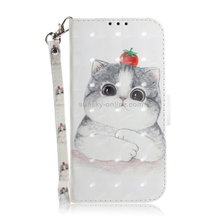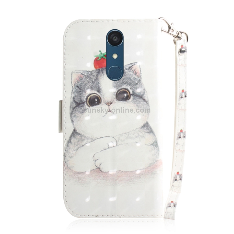 Estuche de Cuero con Tapa Horizontal para LG Q Stylo 5 con Dibujo de Gato 3D y Soporte