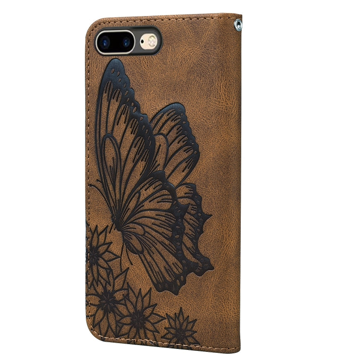 Estuche de Cuero con Tapa Horizontal para iPhone 8 Plus 7Plus Estampado Mariposas Retro (Marrón)