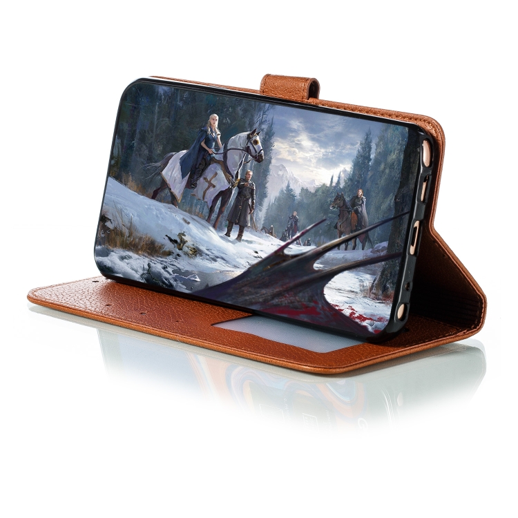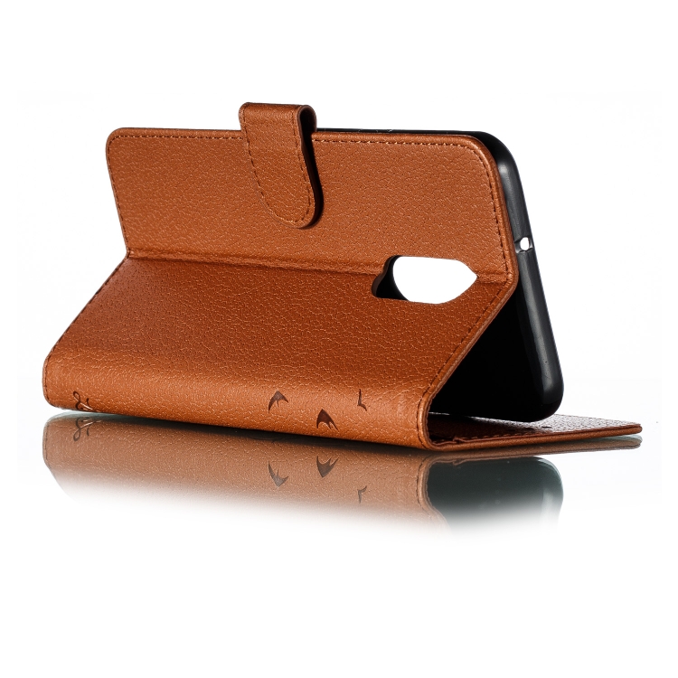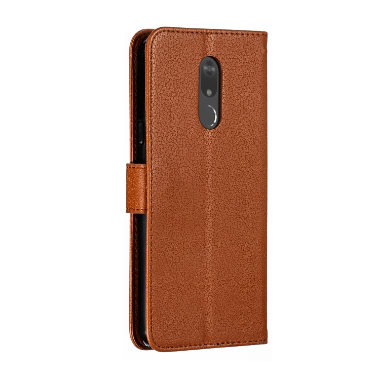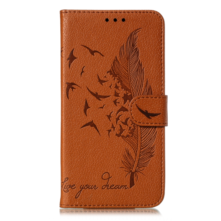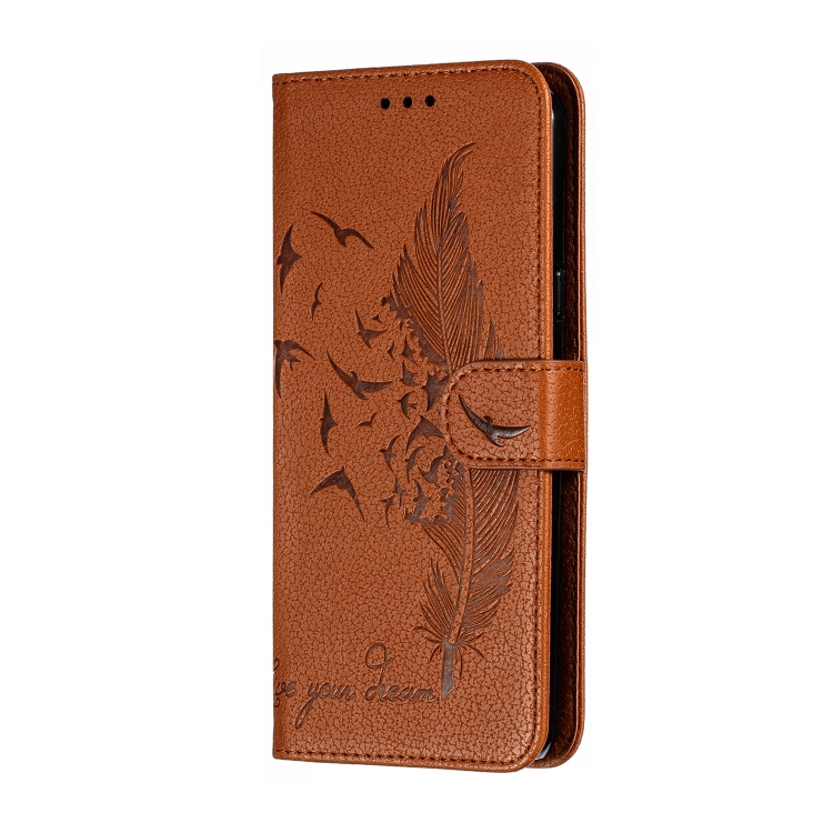 Estuche de Cuero con Tapa Horizontal y Diseño de Plumas con Billetera y Soporte para LG Stylo 5 (Marrón)