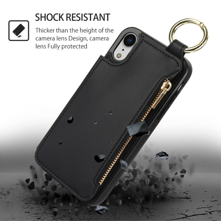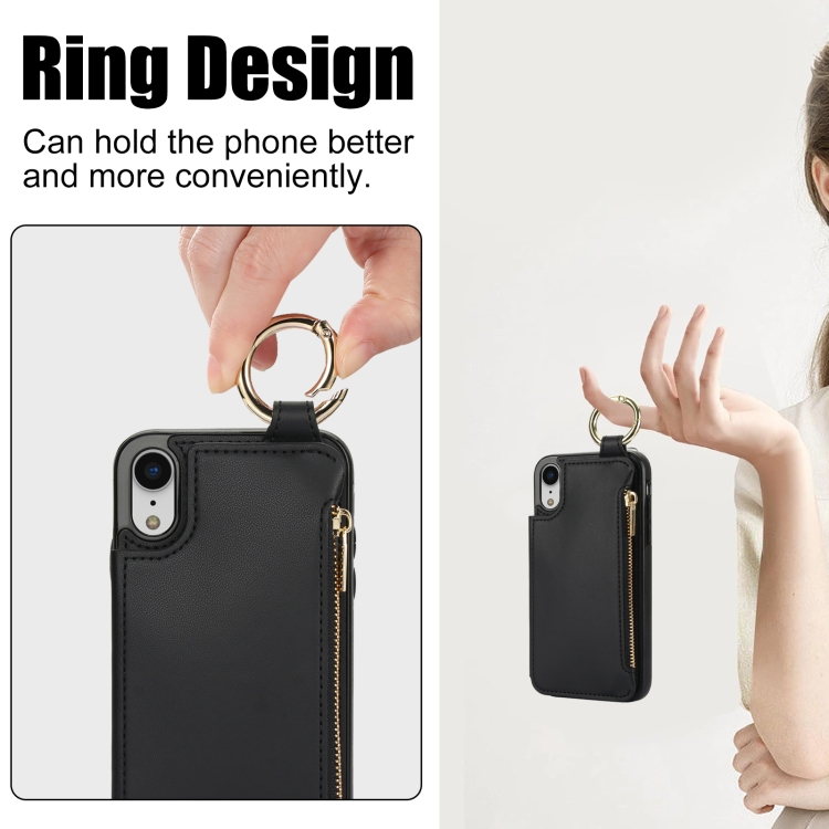 Estuche para Teléfono iPhone Xs/X Rfld con Cremallera y Anillo Doble Hebilla Antirrobo (Negro)