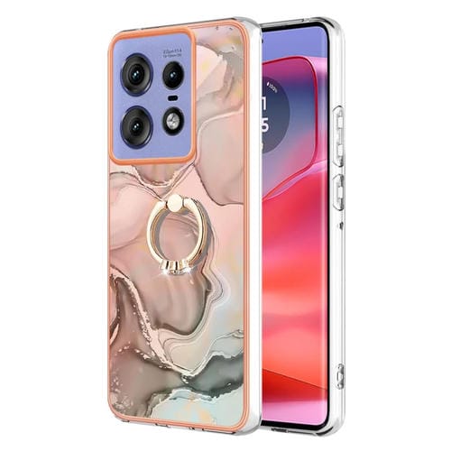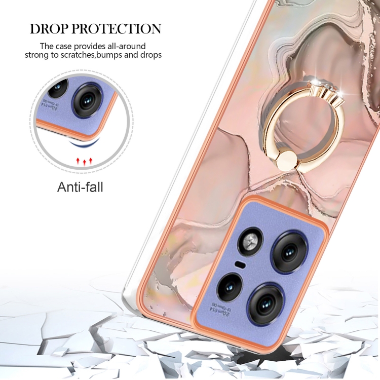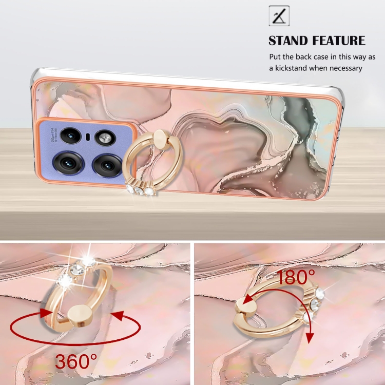 Estuche para Teléfono Motorola Edge 50 Pro con IMD Doble Cara Galvanoplastia Mármol y Anillo (Oro Rosa)