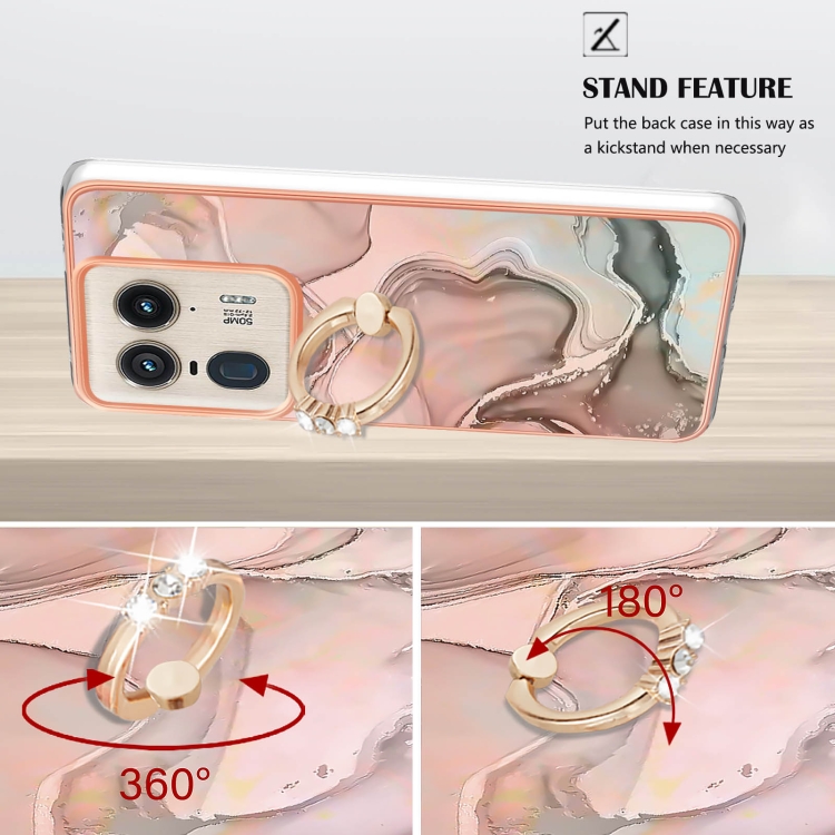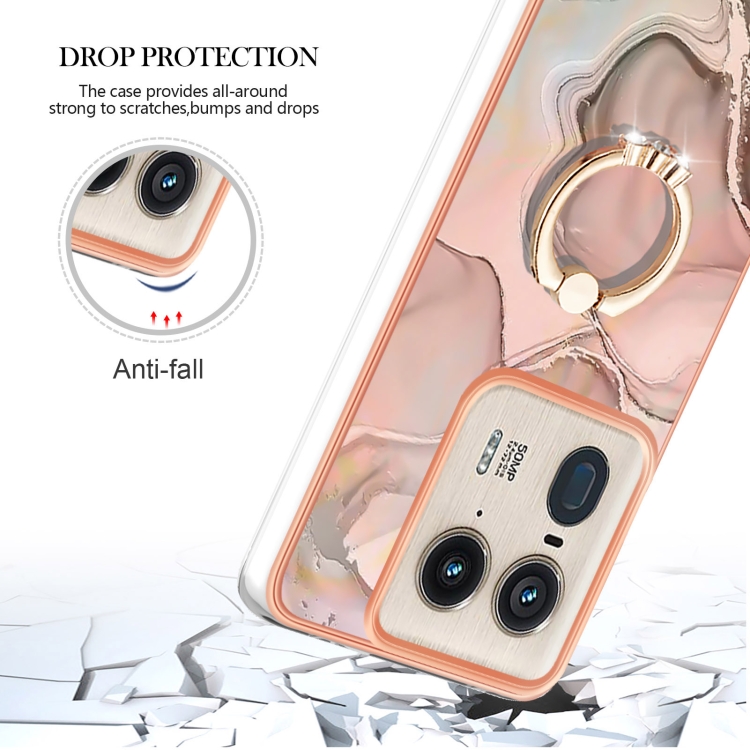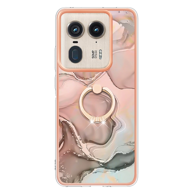Estuche para Teléfono Motorola Edge 50 Ultra con IMD Doble Cara, Galvanoplastia Mármol y Anillo (Oro Rosa)