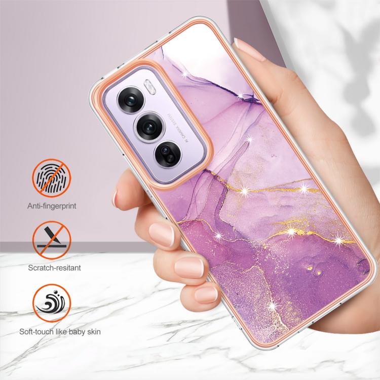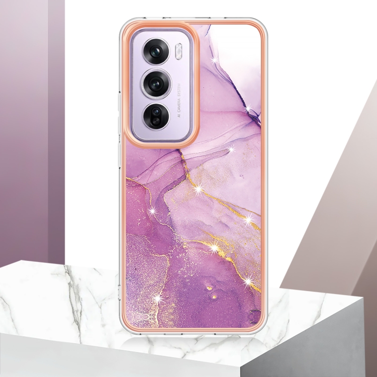 Estuche para Teléfono con Imd de Doble Cara con Galvanoplastia Global de Mármol para Oppo Reno12 Pro (Púrpura 001)
