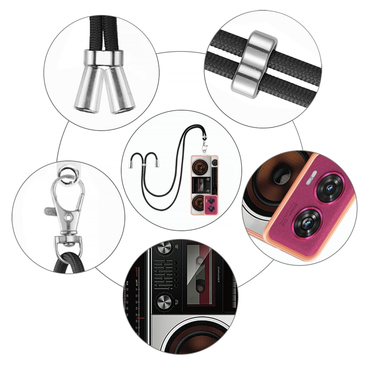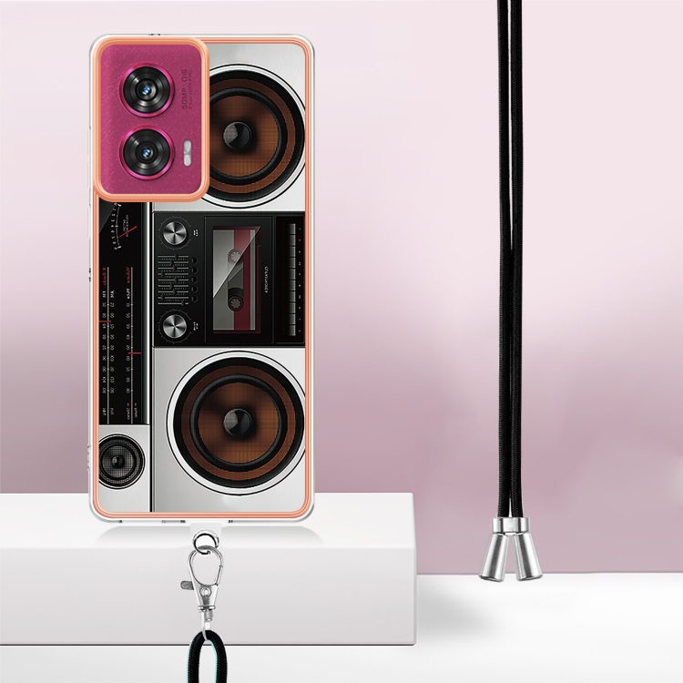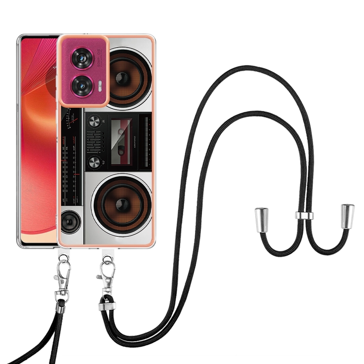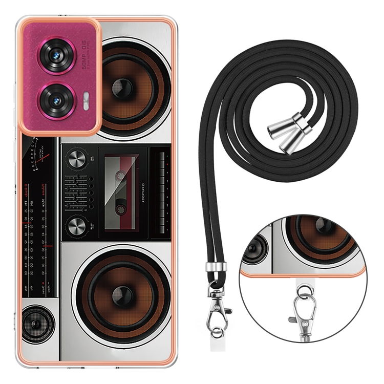 Estuche para Teléfono Motorola Edge 50 Fusion con IMD Doble Cara, Galvanoplastia y Cordón (Radio Retro)