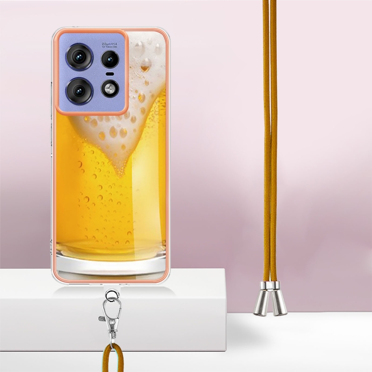 Estuche para Teléfono Motorola Edge 50 Pro con IMD Doble Cara Galvanizada y Cordón (Cerveza de Barril)