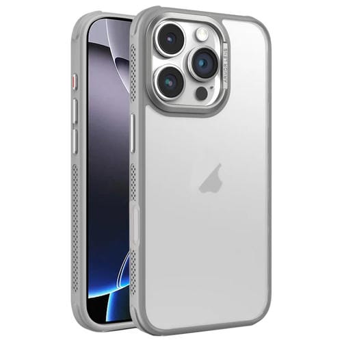 Estuche para Teléfono iPhone 16 Pro Max Marco Metal Esmerilado Piel Enfriamiento (Gris)