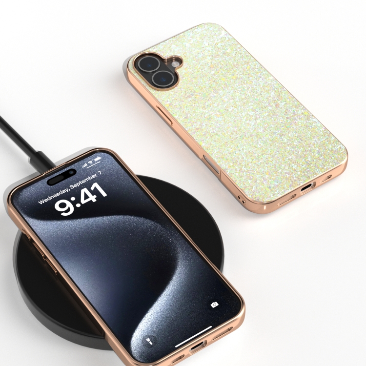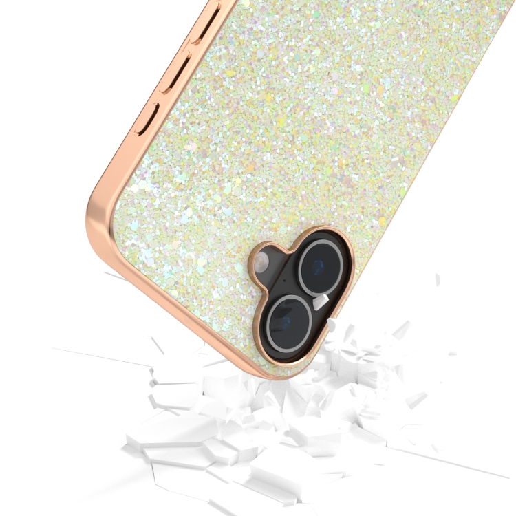 Estuche para Teléfono iPhone 16 Marco Galvanizado Purpurina (Dorado)