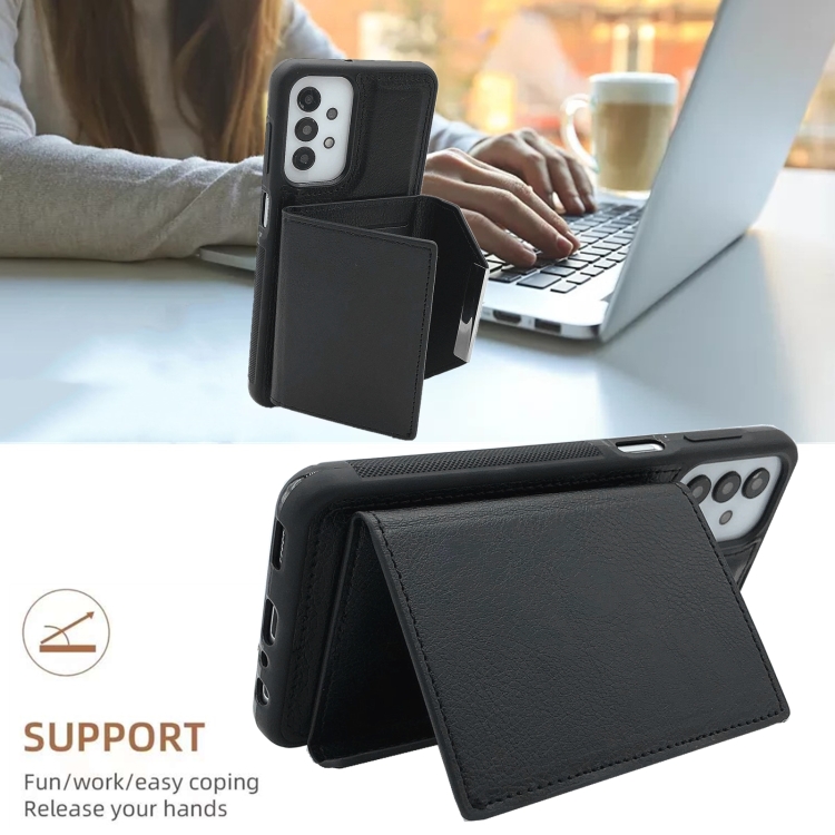 Estuche para Teléfono Samsung Galaxy S20 FE Ranuras para Tarjetas Hebilla Metal (Negro)
