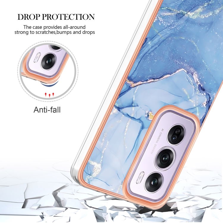 Estuche para Teléfono con Revestimiento de Mármol Electrochapado de Doble Cara Imd para Oppo Reno12 Pro (Azul 018)