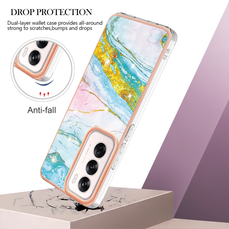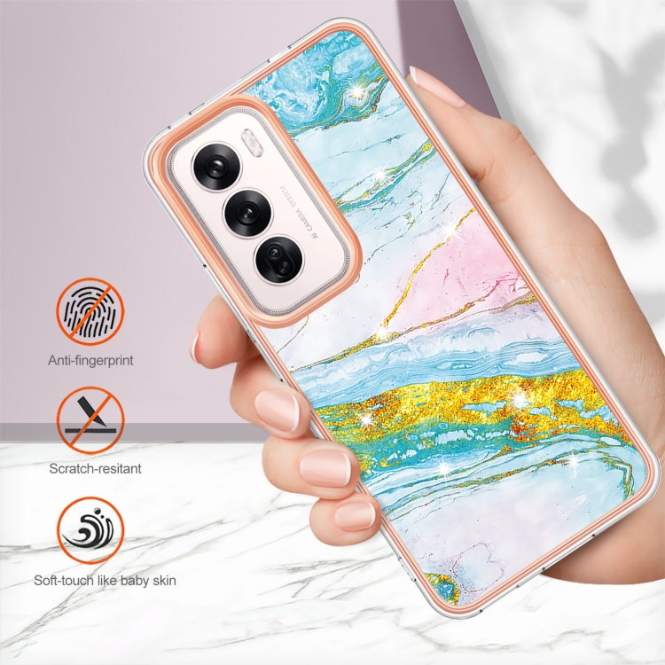 Estuche para Teléfono con Revestimiento Electrolítico de Mármol de Doble Cara Imd para Oppo Reno12 Global (Verde 004)
