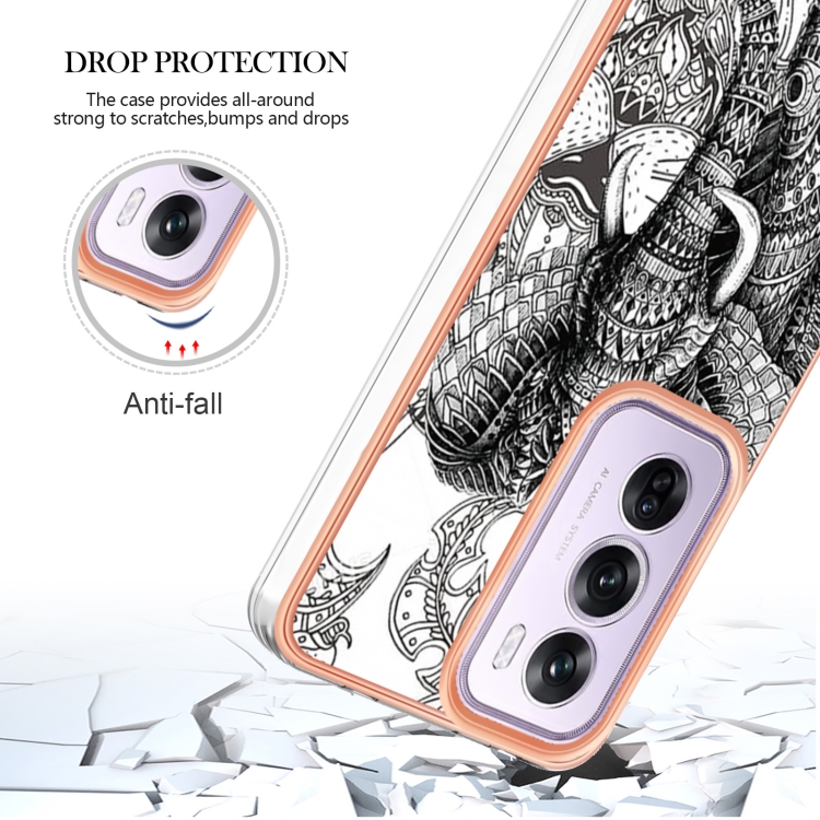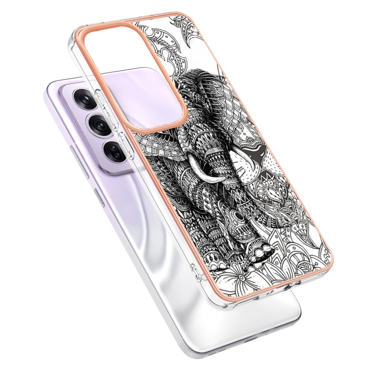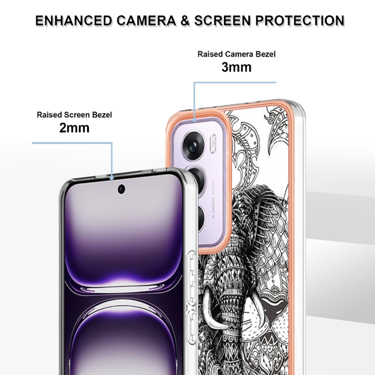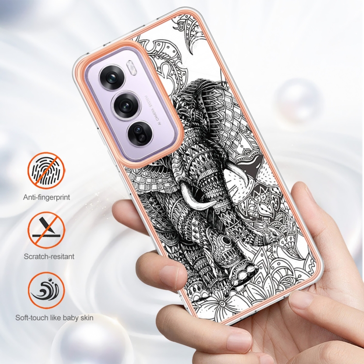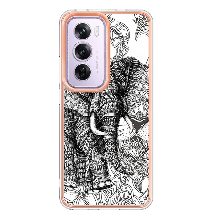 Estuche para Teléfono con Revestimiento Electrolítico de Mármol de Doble Cara Imd para Oppo Reno12 Pro (Elefante Tótem)