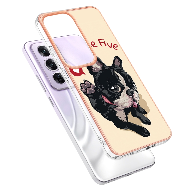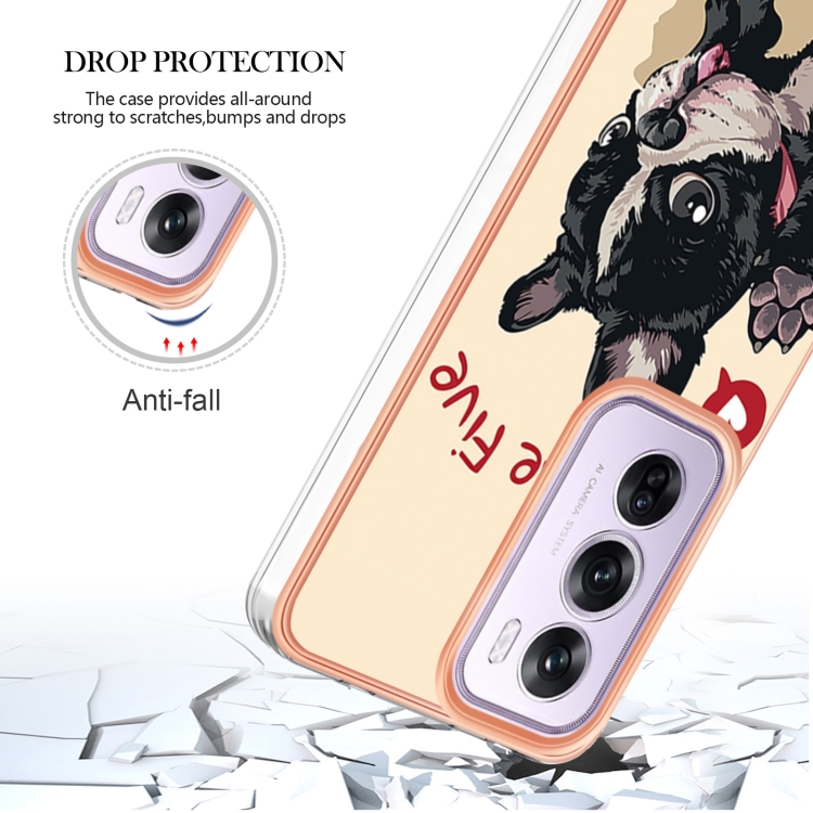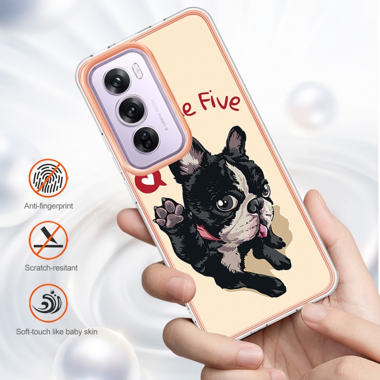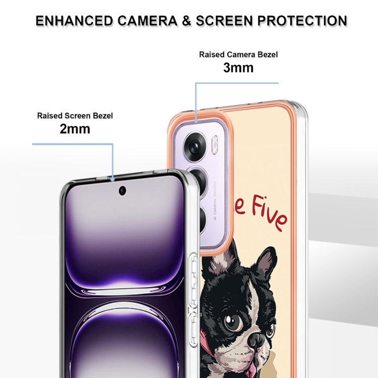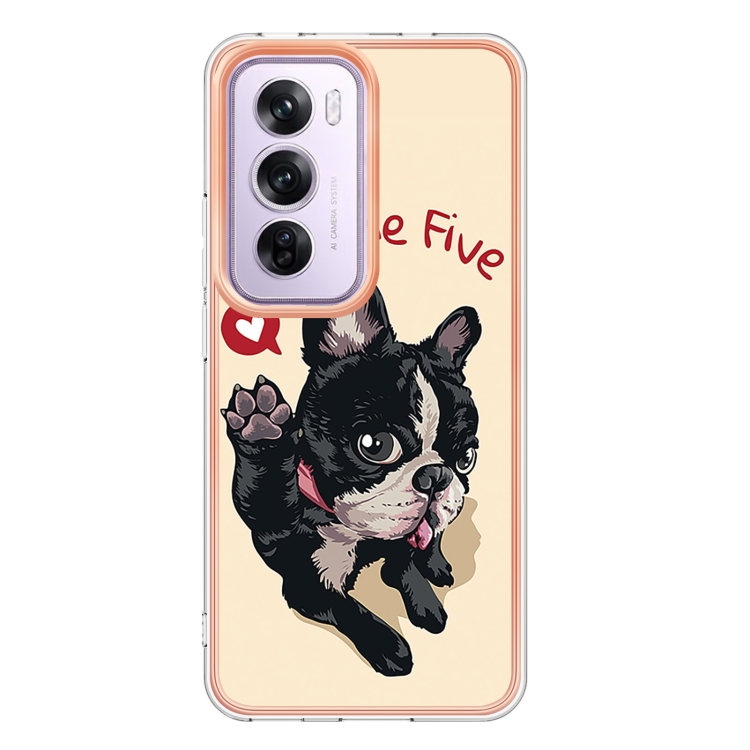 Estuche para Teléfono con Revestimiento Electrolítico de Mármol de Doble Cara Imd para Oppo Reno12 Pro (Perro de la Suerte)
