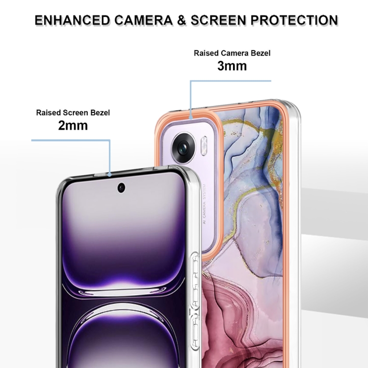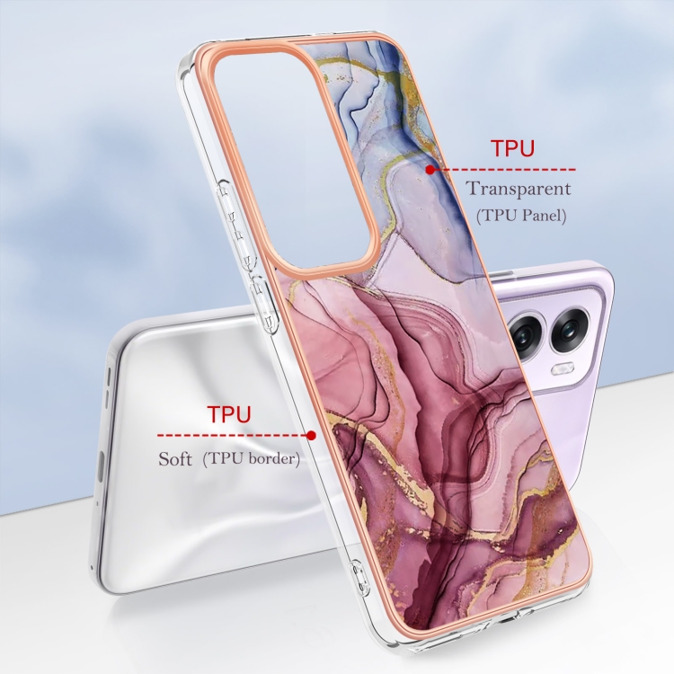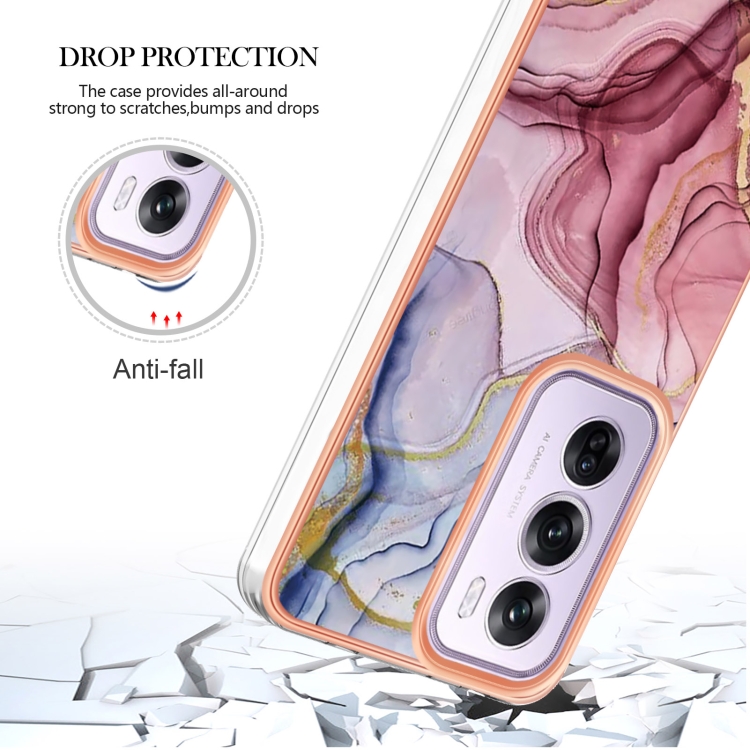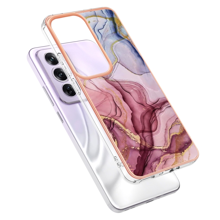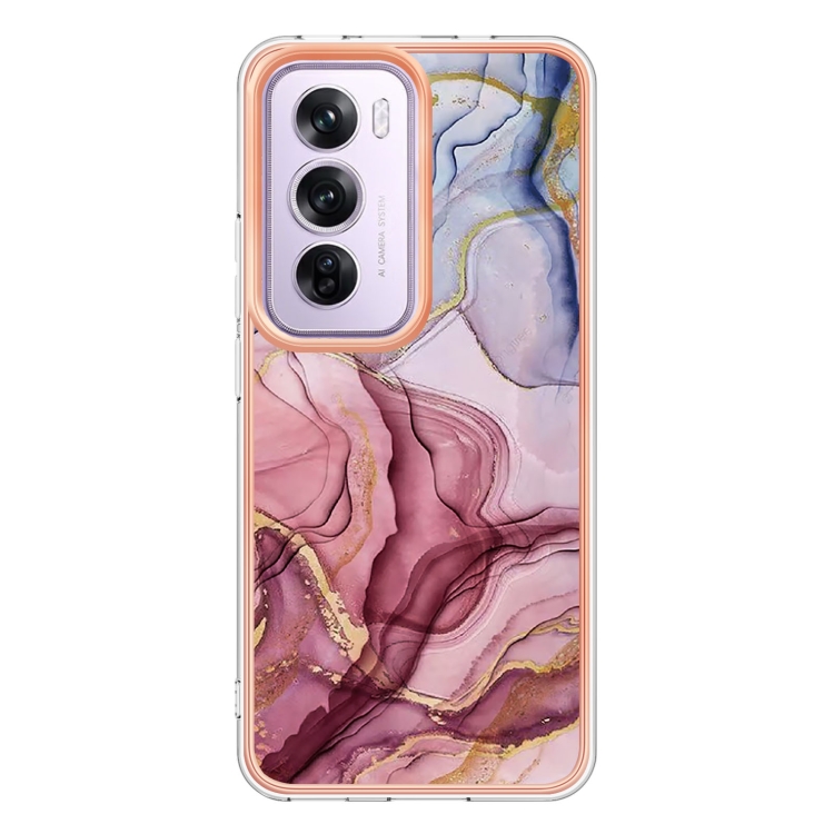 Estuche para Teléfono con Revestimiento Electrolítico de Mármol de Doble Cara Imd para Oppo Reno12 Pro (Rojo Rosa 014)