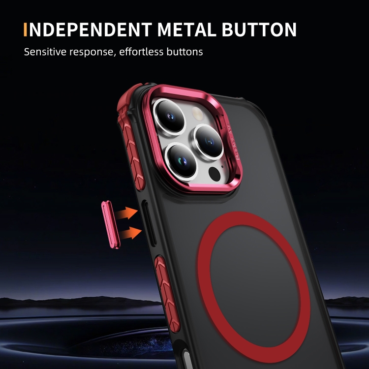 Estuche para Teléfono iPhone 16 Pro Soporte para Lentes Magsafe Tacto de Piel (Rojo)