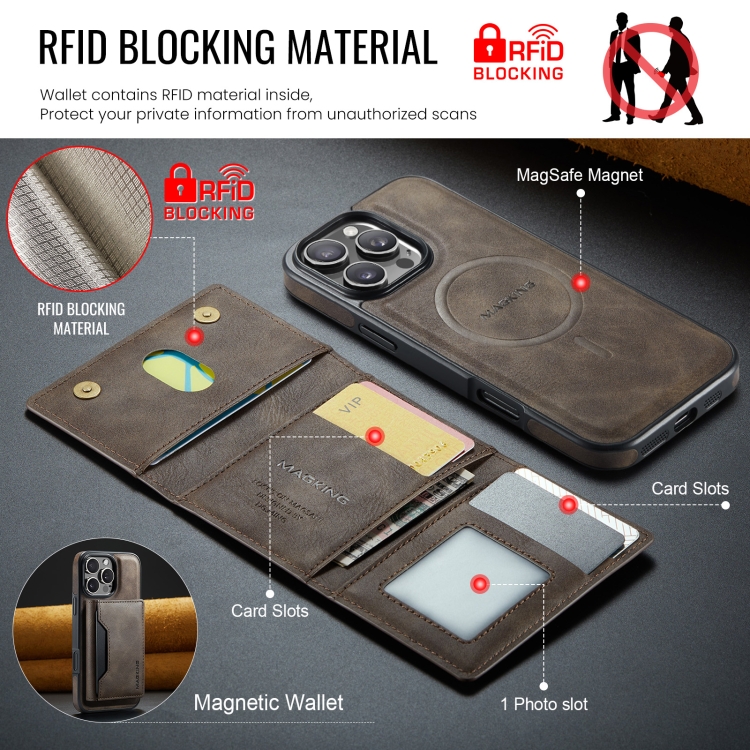 Estuche para Teléfono Dg.Ming Magking-K2 Desmontable con Tarjetero Rfid Magsafe para iPhone 16 Pro (Café)