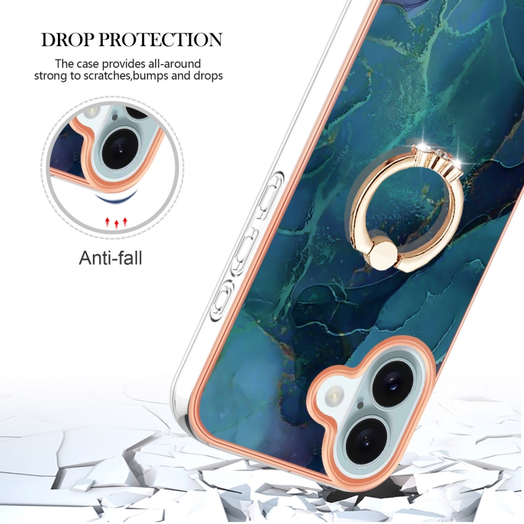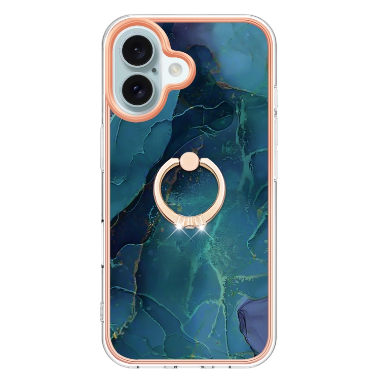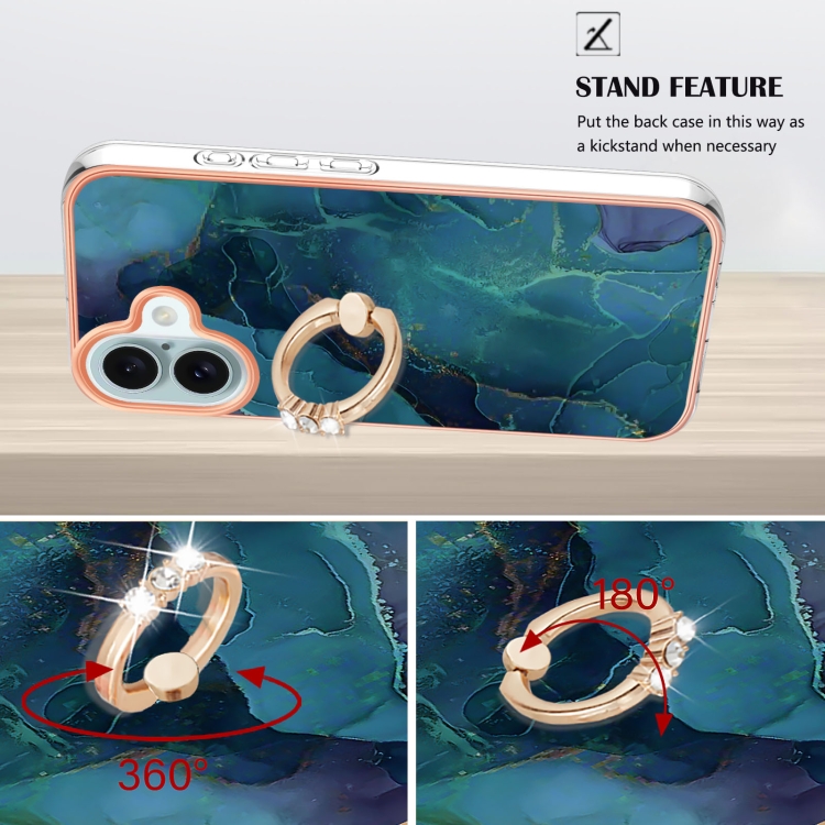 Estuche para Teléfono Imd Doble Cara Galvanoplastia Mármol iPhone 16 con Anillo (Verde)
