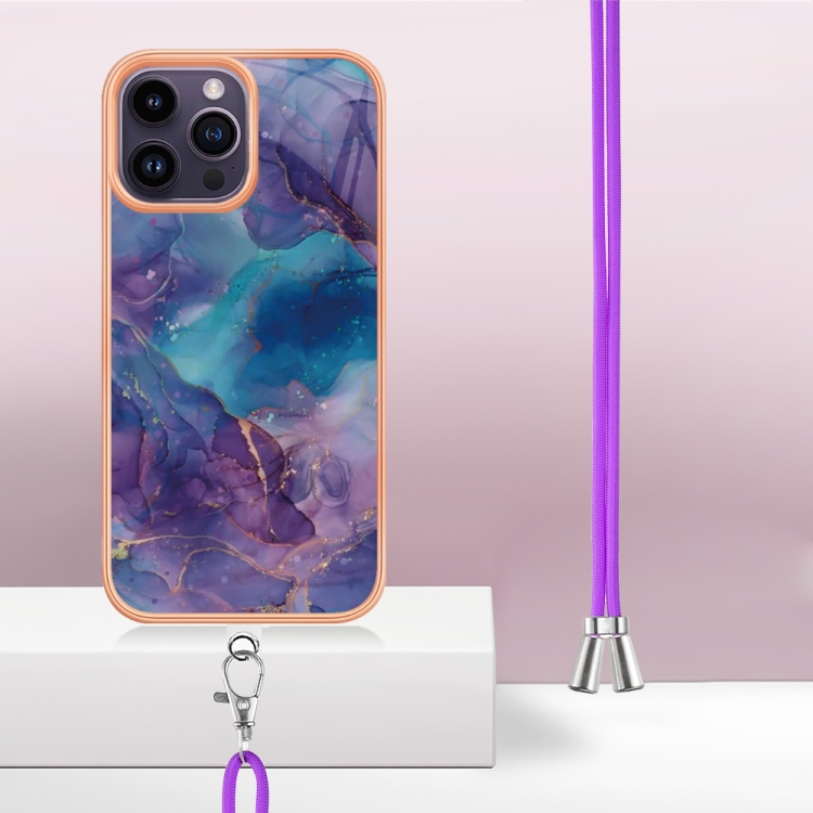 Estuche para Teléfono Imd Doble Cara Galvanoplastia Mármol iPhone 16 Pro Max con Cordón (Púrpura)