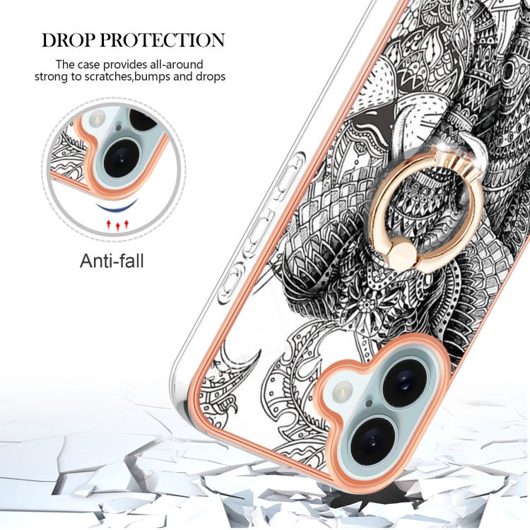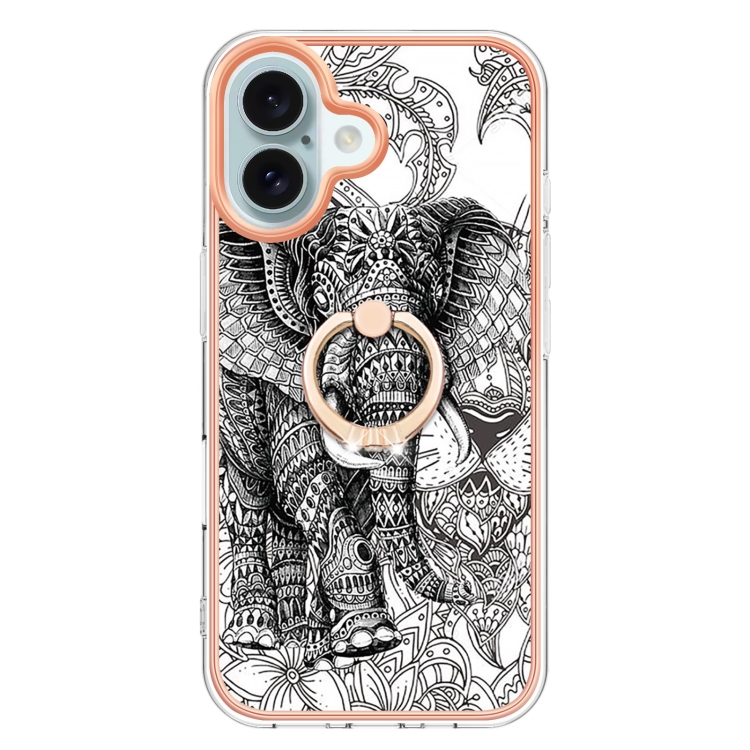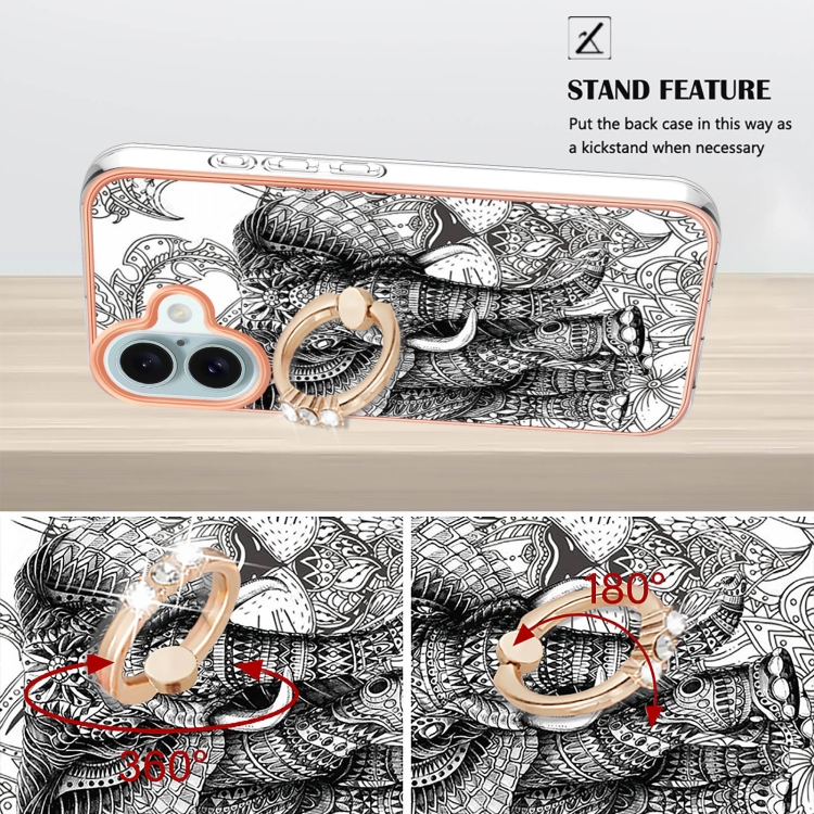 Estuche para Teléfono Imd Doble Cara con Galvanoplastia y Soporte Anillo para iPhone 16 (Elefante Tótem)