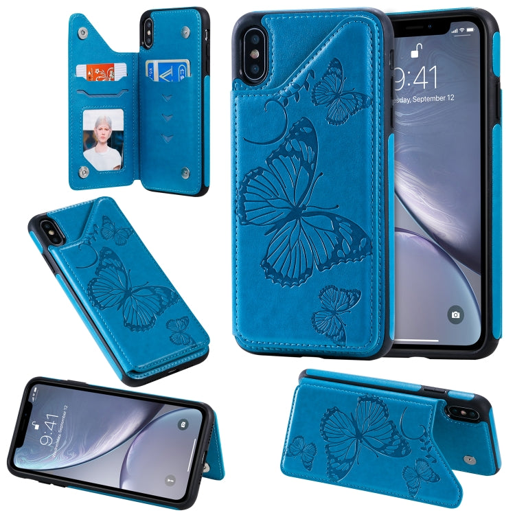 Estuche Protector para iPhone Xs Max con Soporte, Ranuras para Tarjetas y Marco de Fotos (Azul)