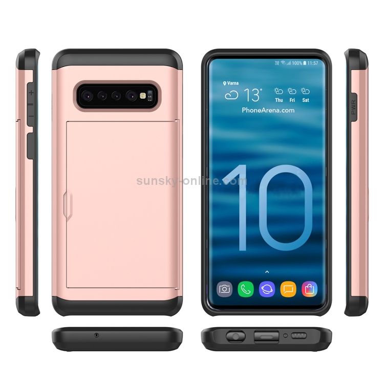 Estuche Protector Galaxy S10 + Armadura Resistente Prueba de Golpes con Ranura para Tarjeta (Blanco)