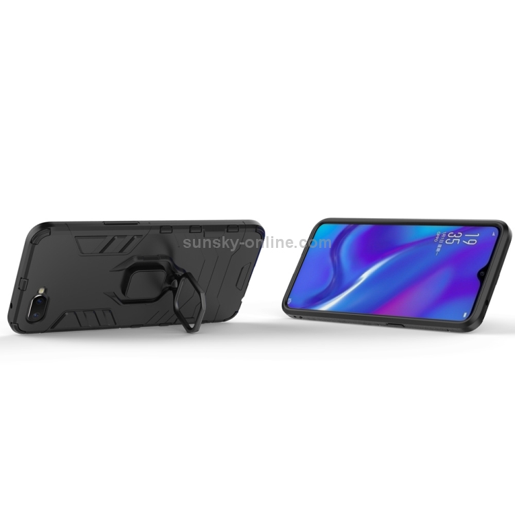 Estuche Protector PC + TPU a Prueba de Golpes para Oppo K1, con Soporte de Anillo Magnético (Negro)