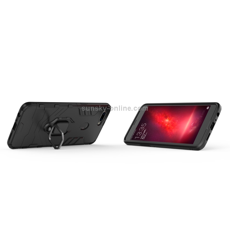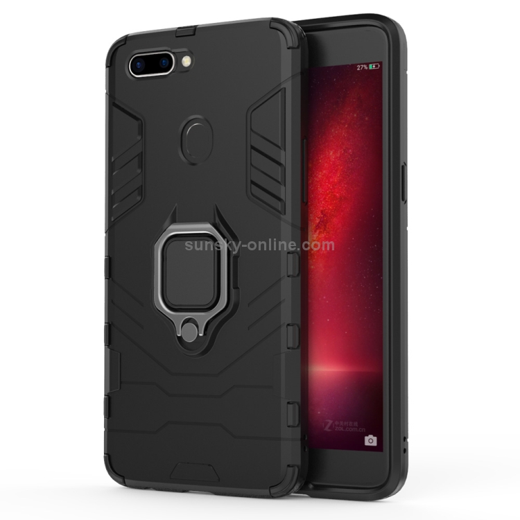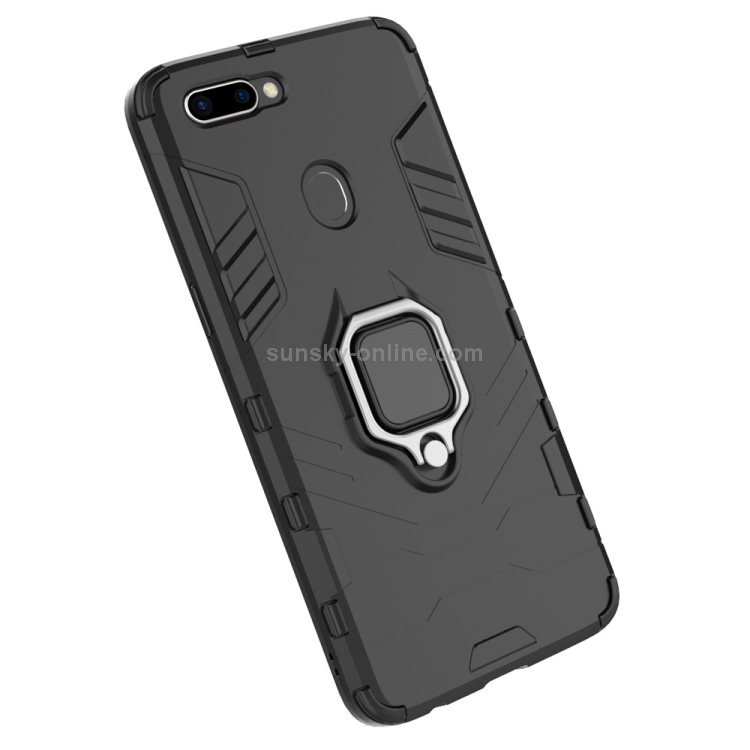 Estuche Protector PC + TPU a Prueba de Golpes para Oppo R11S Plus, con Soporte de Anillo Magnético (Negro)