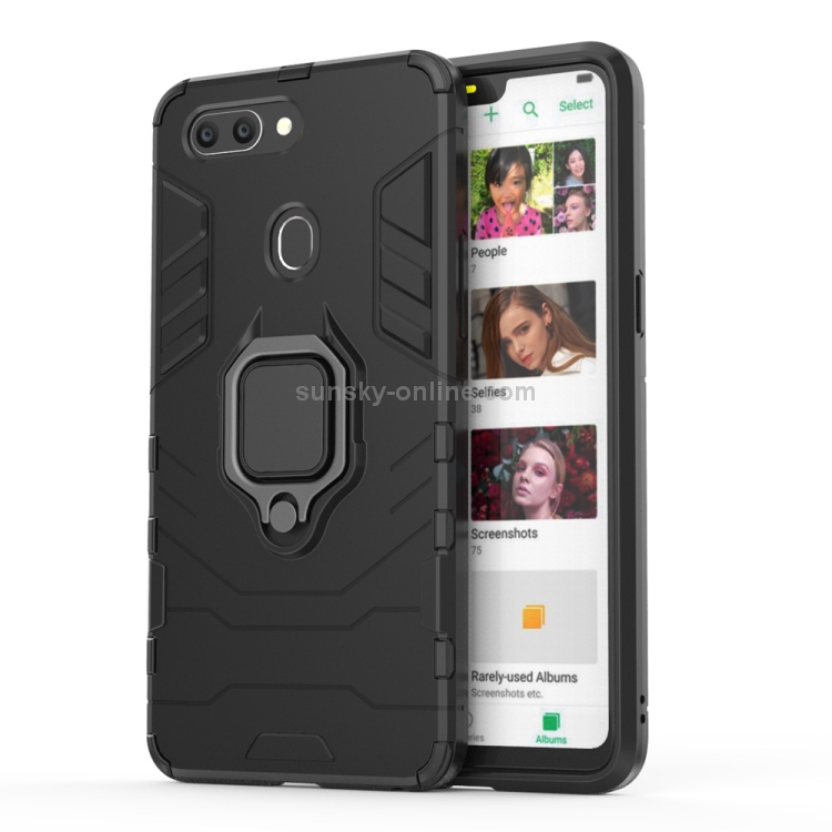 Estuche Protector PC + TPU a Prueba de Golpes para Oppo R15, con Soporte de Anillo Magnético (Negro)