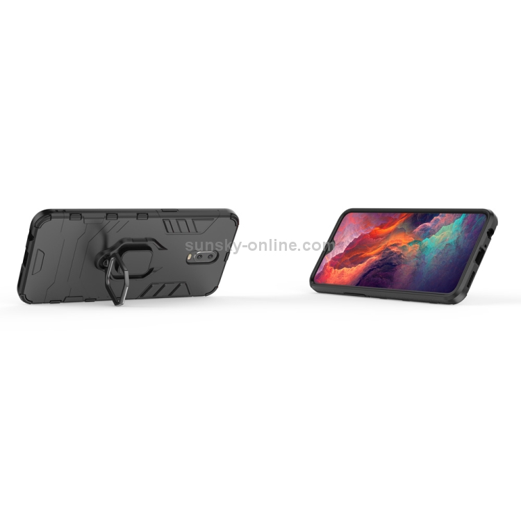Estuche Protector PC + TPU a Prueba de Golpes para Oppo R17, con Soporte de Anillo Magnético (Negro)