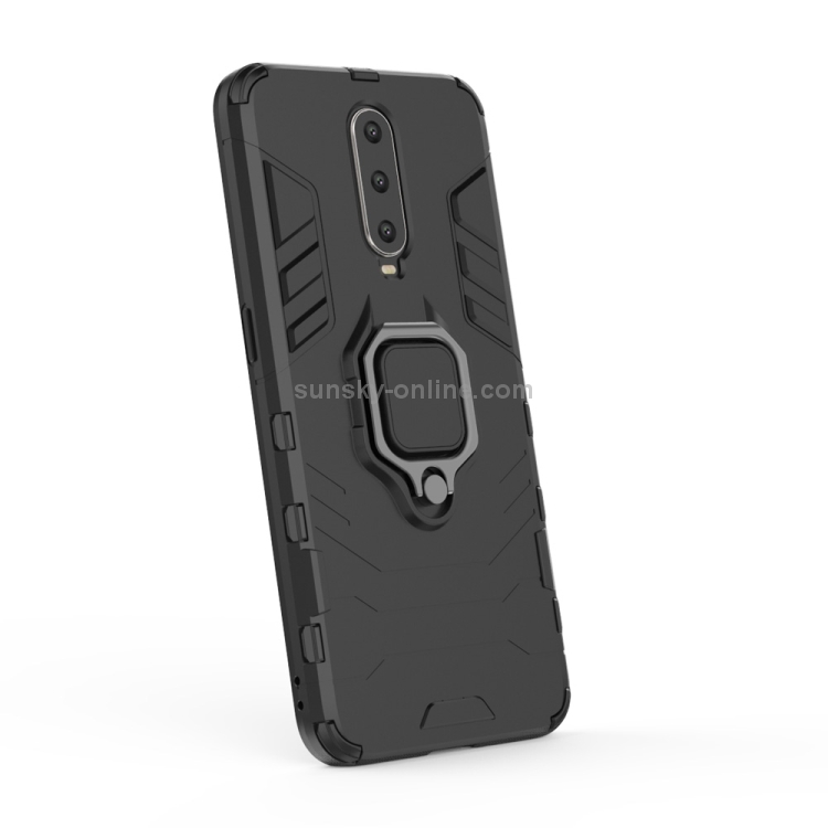 Estuche Protector PC + TPU a Prueba de Golpes para Oppo R17 Plus, con Soporte de Anillo Magnético (Negro)