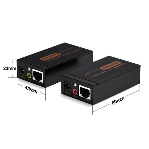 El dispositivo permite extender la Señal de vídeo y audio hasta 100 metros utilizando Cable de red Cat5E o Cat6.
