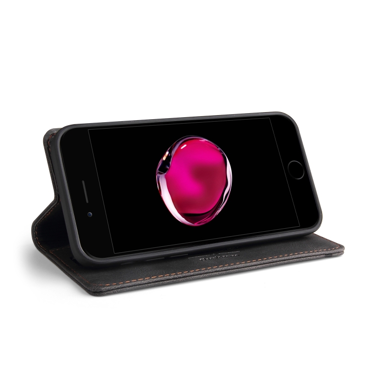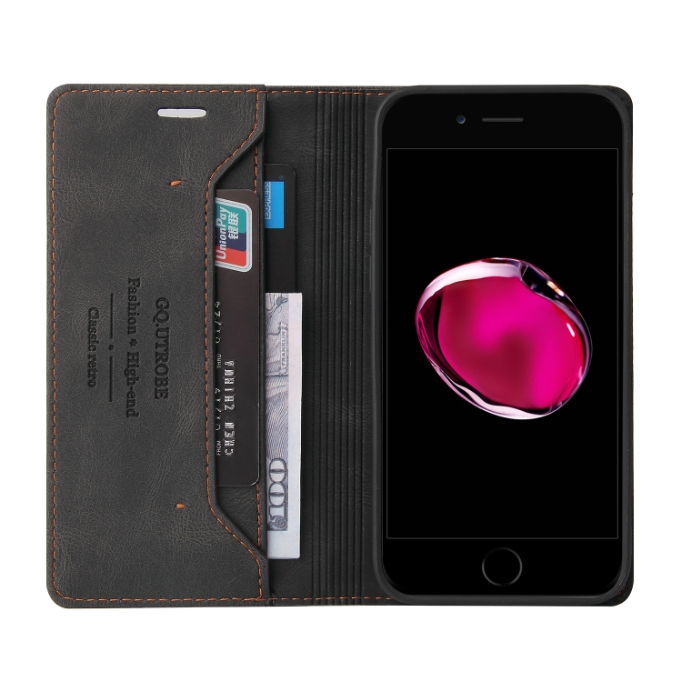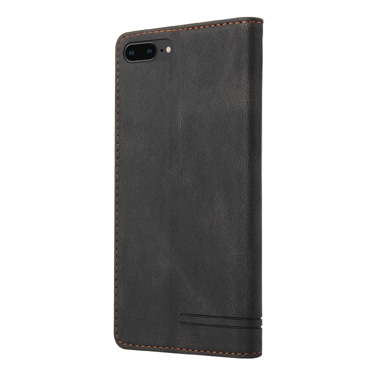 Funda de Cuero Cepillo Anti-Robo con Soporte y Billetera para iPhone 8 Plus y 7 Plus (Negro)