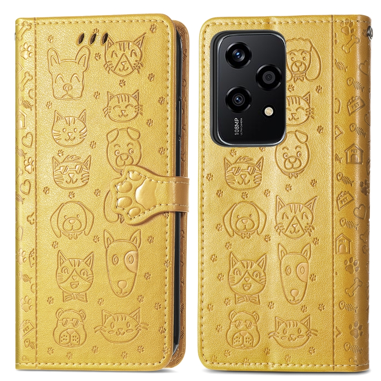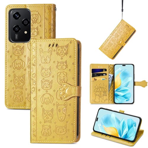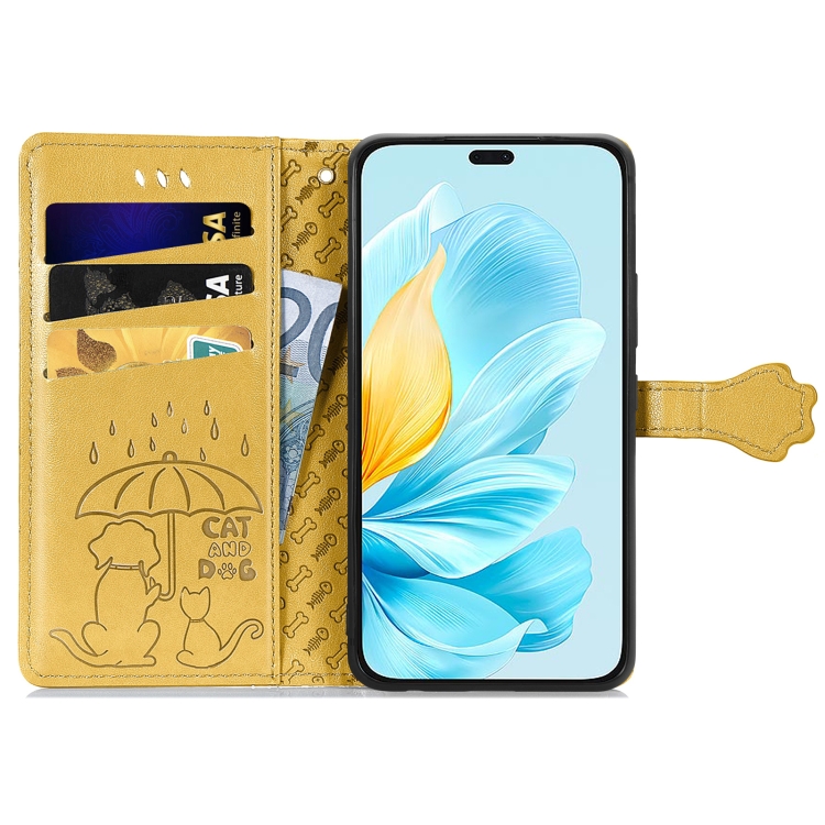 Funda para Teléfono For Honor 200 Lite Cuero con Relieve de Perro y Gato (Amarillo)