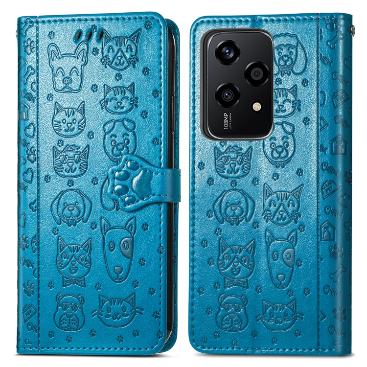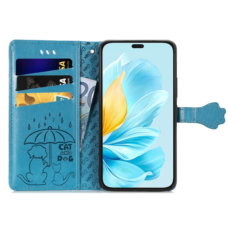 Funda para Teléfono For Honor 200 Lite Cuero con Relieve de Perro y Gato (Azul)