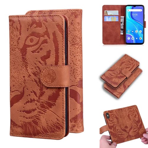 Funda de cuero horizontal para Umidigi A7S con patrón Tiger, tarjetero y billetera (Marrón)