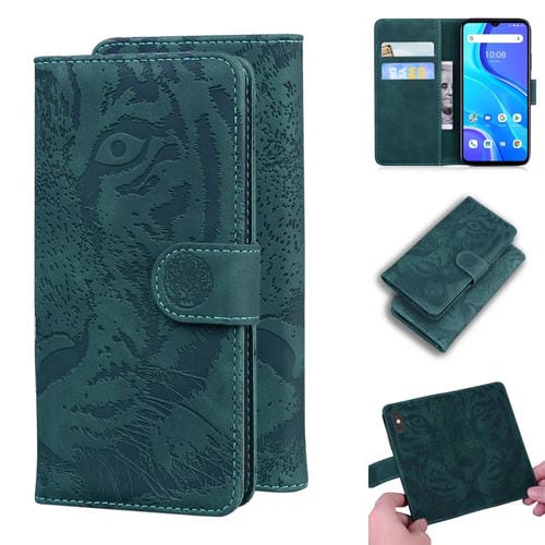 Funda de cuero horizontal para Umidigi A7S con patrón Tiger, tarjetero y billetera (Verde)