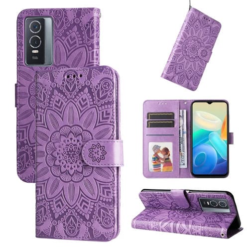For Vivo Y76S / Y76 5G Embossed Sunflower Leather Phone Case(Purple)