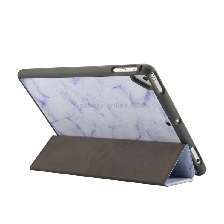 Funda Abatible Horizontal iPad 9.7 (2018) Patrón Mármol con Soportes y Ranuras (Púrpura)