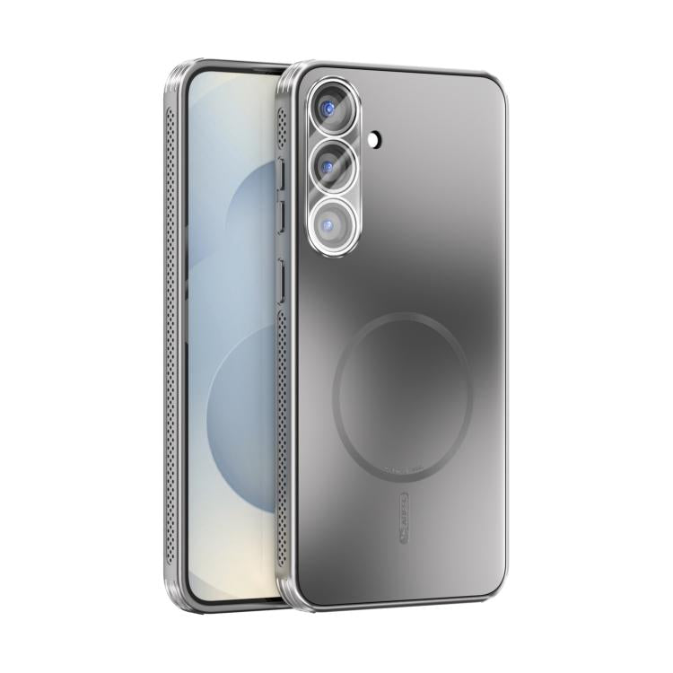 Funda ABEEL MagSafe esmerilada con disipación de calor y película para lente para Samsung Galaxy S25+ 5G (plateada)
