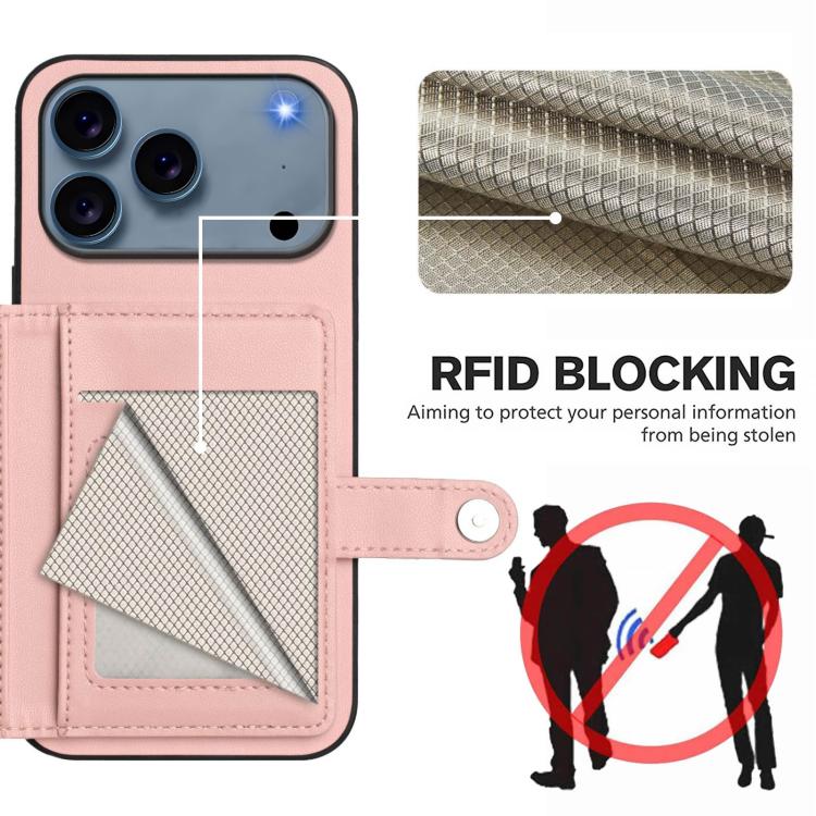 Funda antirrobo RFID con botón y tarjetero para iPhone 17 Pro (rosa)
