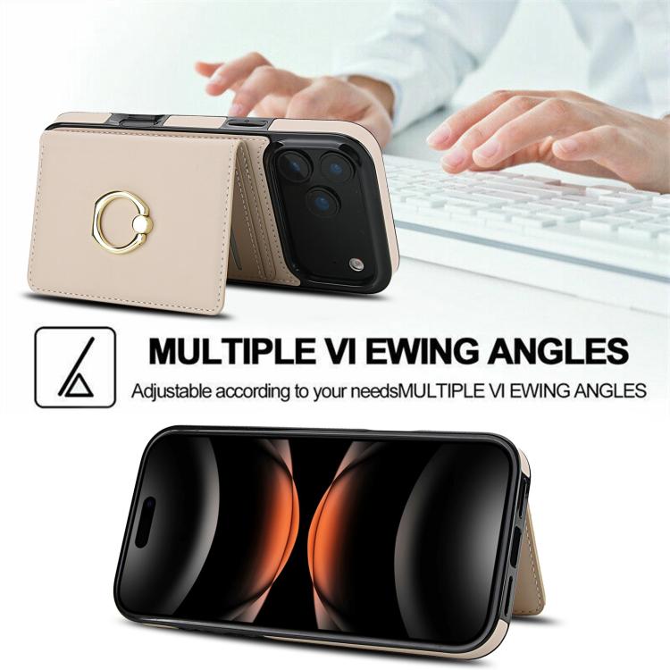 Funda antirrobo RFID para iPhone 17 Pro Max con anillo para tarjetas (blanca)
