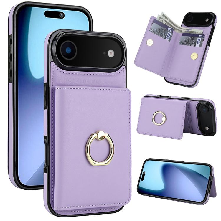 Funda antirrobo RFID para iPhone Air con anillo para tarjetas (morado)
