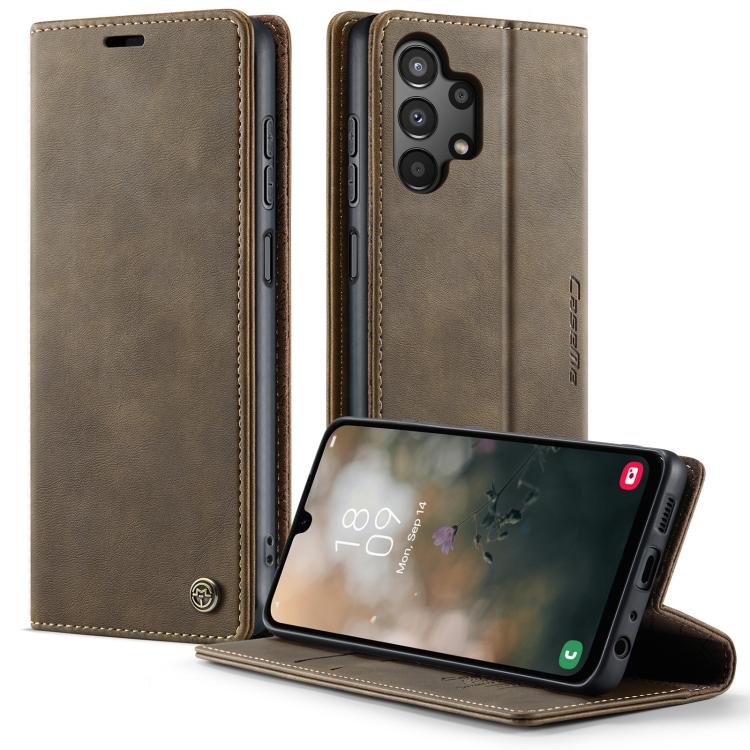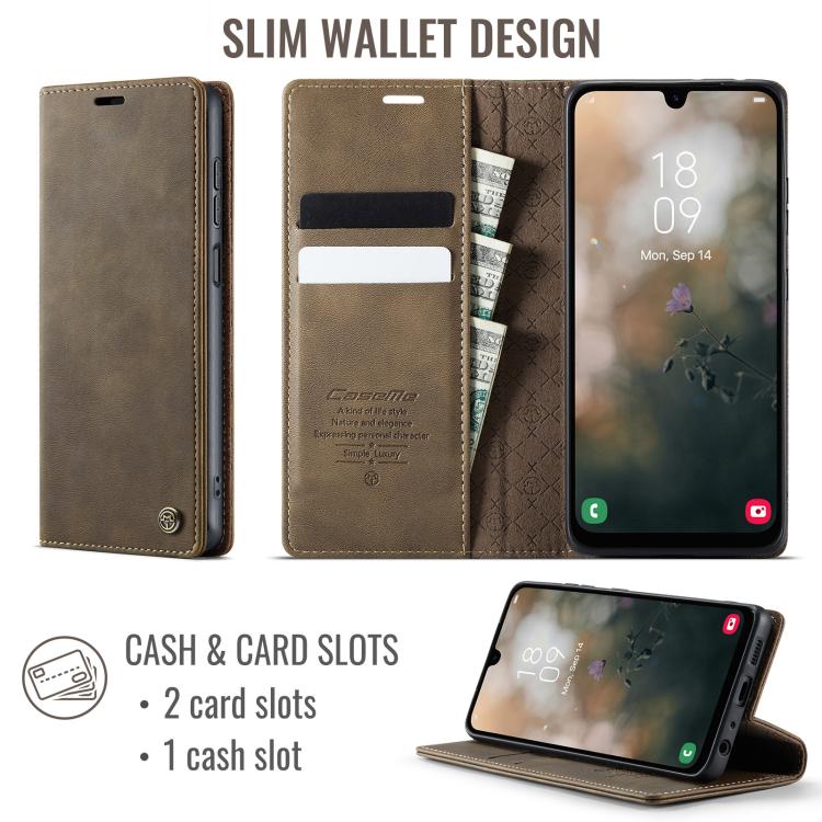 Funda CaseMe 033 para Samsung Galaxy A13/A04s, forro de piel de becerro, microfibra y bloqueo RFID (café)