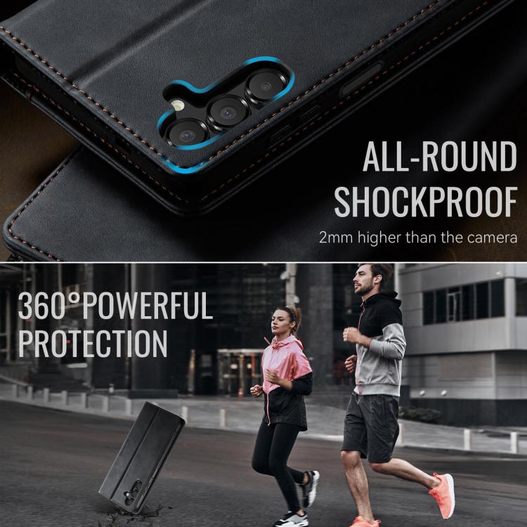 Funda CaseMe 033 para Samsung Galaxy A14, forro de piel de becerro, microfibra, con bloqueo RFID (negro)