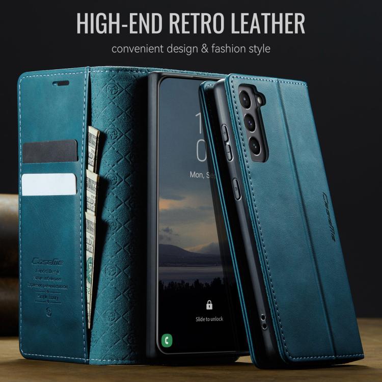 Funda CaseMe 033 para Samsung Galaxy S21 5G, forro de piel de becerro, microfibra, con bloqueo RFID (verde)