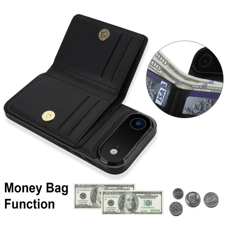 2. Práctico tarjetero: La ranura para tarjetas y el compartimento para efectivo permiten guardar tarjetas de crédito, efectivo o billetes pequeños necesarios para el uso diario.