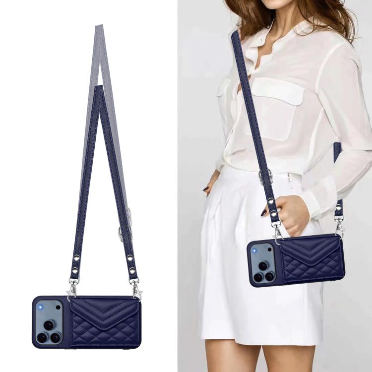 Funda con textura rómbica para iPhone 17 Pro, con RFID y cordón largo (azul)