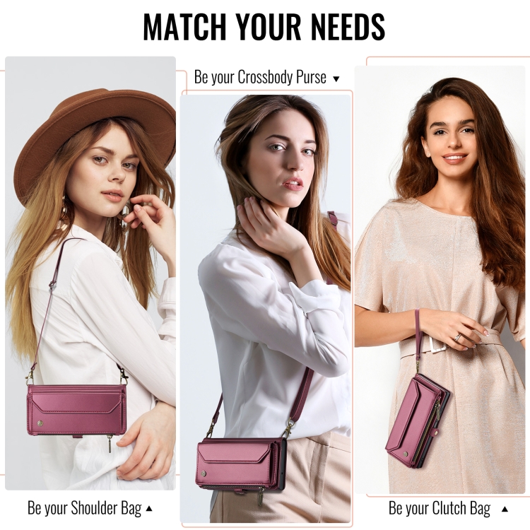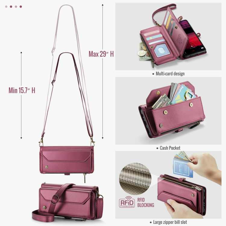 Funda de Cuero Antirrobo Caseme C36 para Samsung Galaxy A16 5G con Ranuras y Billetera con Cremallera (Rojo)