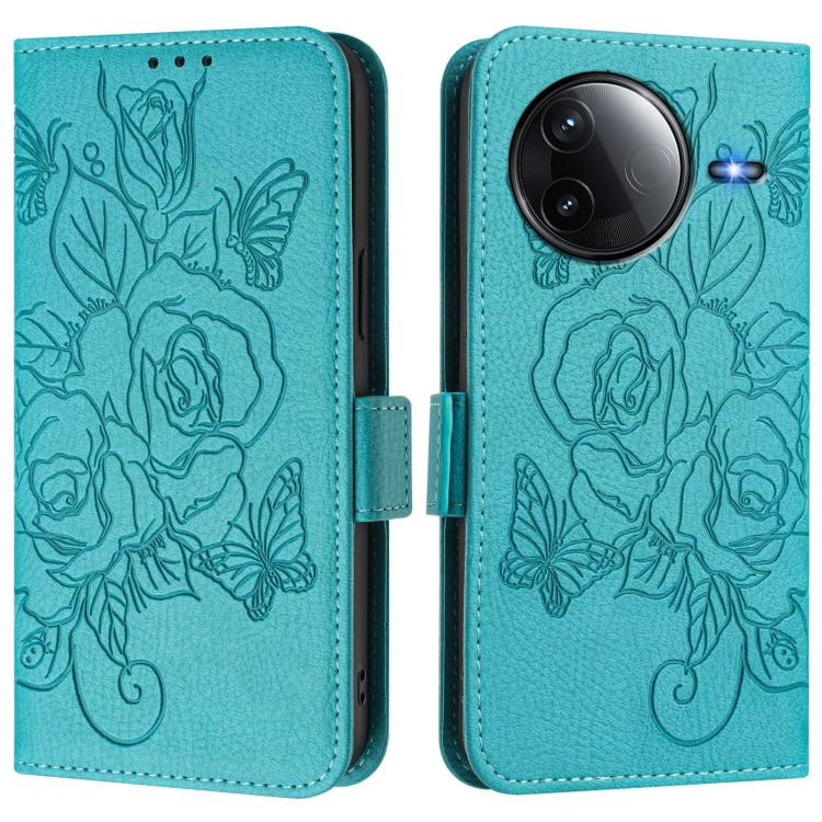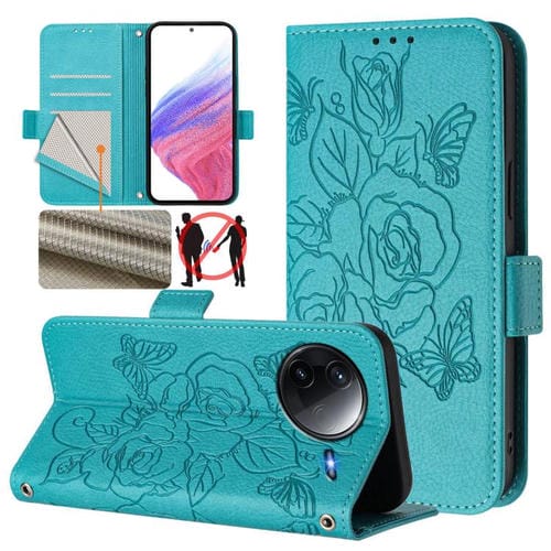 Funda de Cuero Antirrobo con Rfid para Redmi K80 5G/K80 Pro 5G con Relieve En Rosa (Azul Claro)